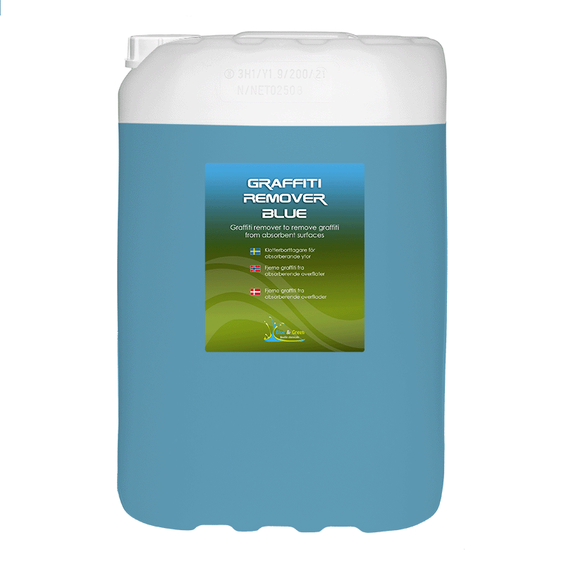 GR Blue används för att avlägsna klotter från absorberande ytor såsom tegel, granit, betong, marmor, terrazzo, skiffer, sandsten, kalksten, klinker mm.